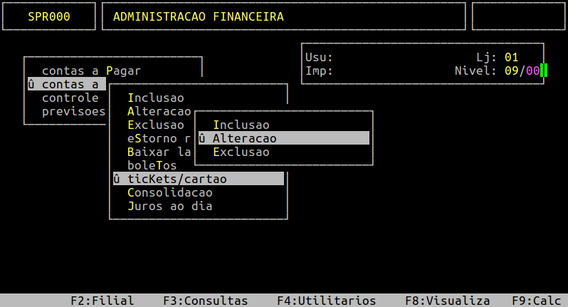 Rotina: | Alteração CARTAO de CREDITO e TICKETS |