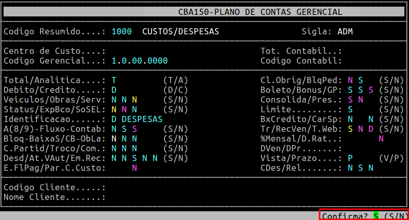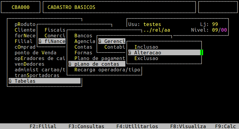 Cadastros Basicos / Tabelas / Financeiras / Plano de Contas / Gerencial / Alteracao |