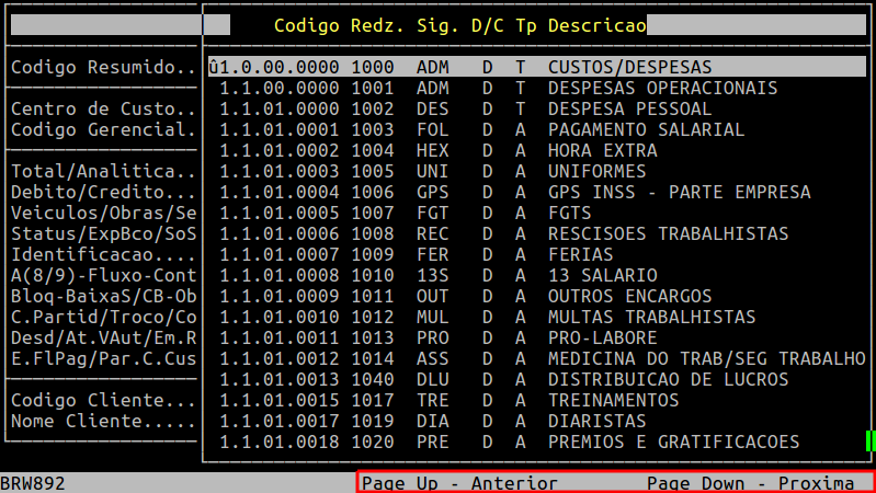 Ao pressionar a tecla F2, utilize as teclas Page Up e Page Down para percorrer a lista das contas cadastradas e selecione a desejada com a tecla Enter.