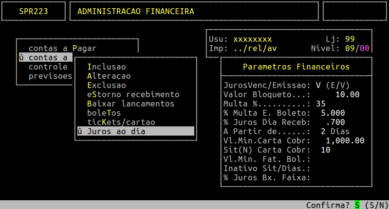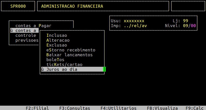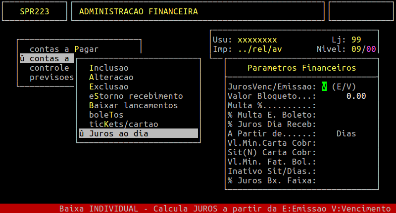 Localização: | Administracao Financeira / Contas a Receber / Juros ao dia |