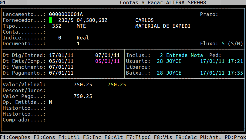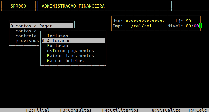 Localização: | Administracao Financeira / Contas a Pagar / Alteracao |