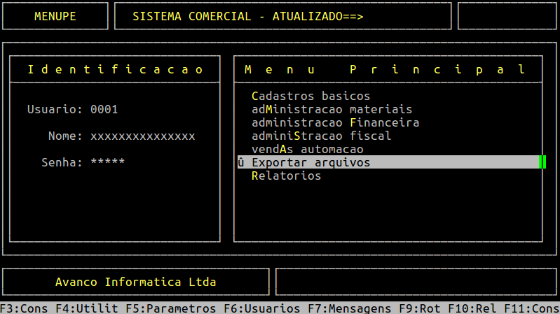 Localização: | Exportar Arquivos / Frente Avanco / Produto - Modalidade |