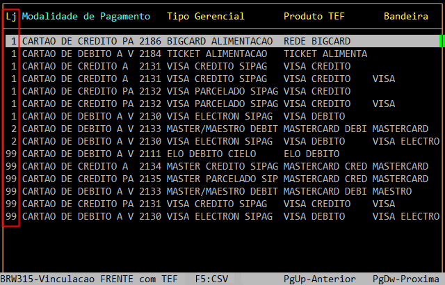 1- Consultando as Vinculações das Formas de Pagamento Provenientes do TEF