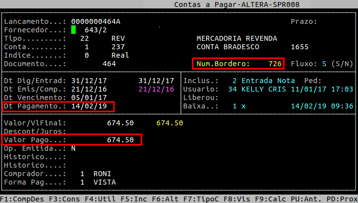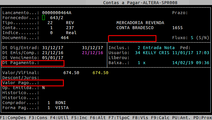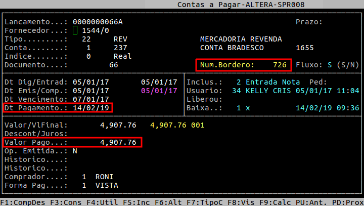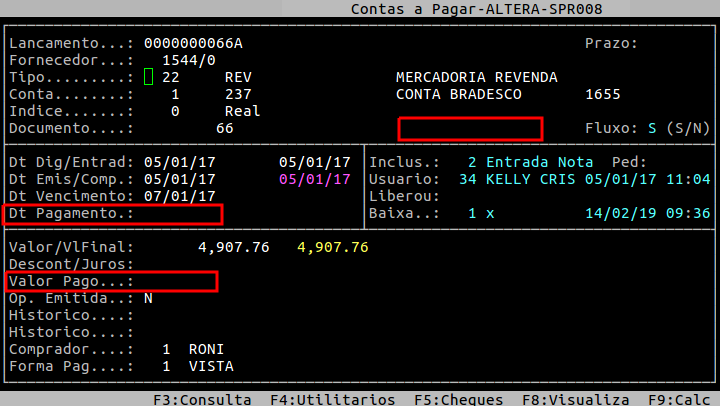 Administracao Financeira / Contas a Pagar / Alteracao |