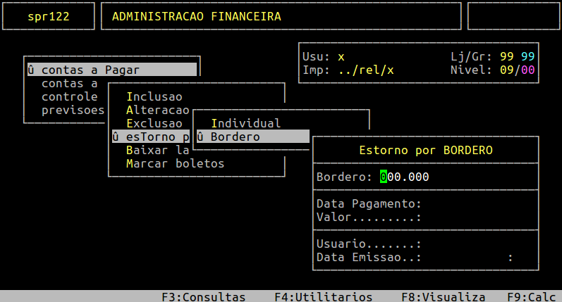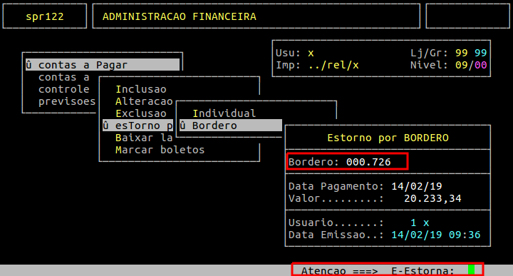 Administracao Financeira / Contas a Pagar / Estorno Pagamentos / Bordero |