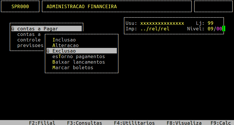 Localização: | Administracao Financeira / Contas a Pagar / Exclusao |