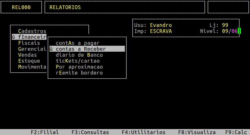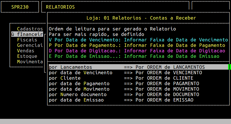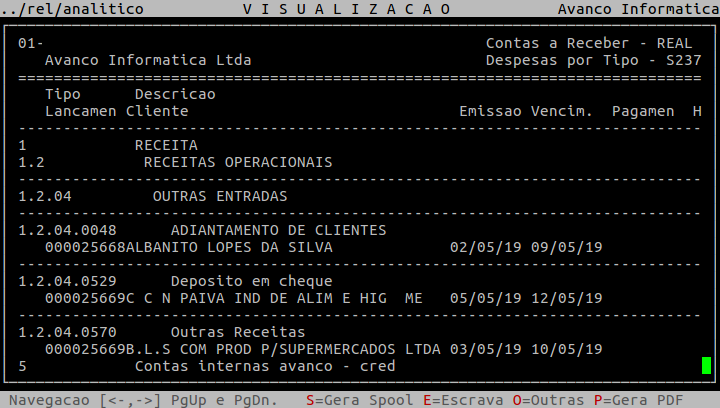 Assim que preencher os campos acima, pressione a tecla Enter ou S para confirmar e gerar o relatório, conforme o exemplo abaixo.