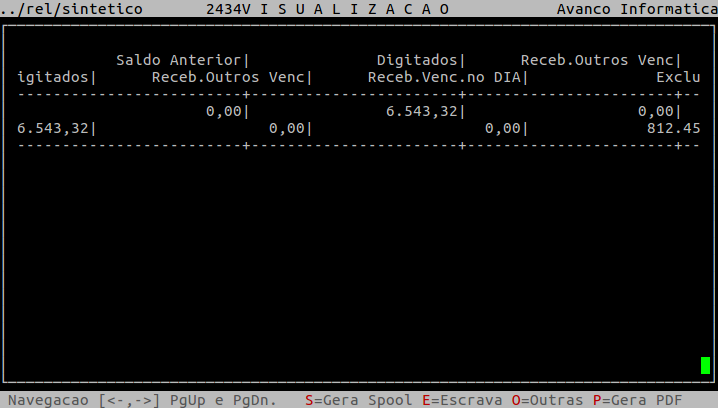 Assim que preencher os campos acima, pressione a tecla Enter ou S para confirmar e gerar o relatório, conforme o exemplo abaixo.