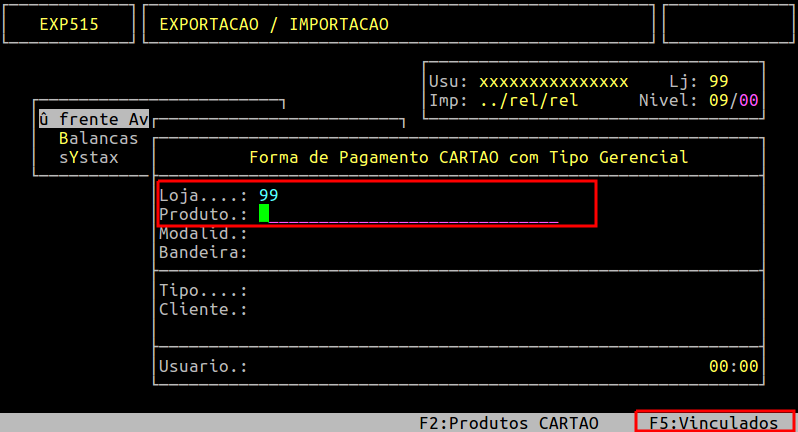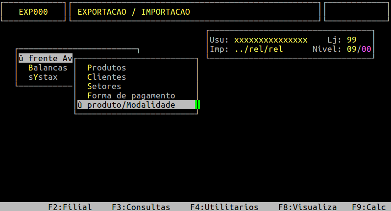 Localização: | Exportar Arquivos / Frente Avanco / Produto - Modalidade |
