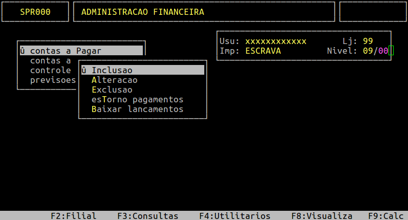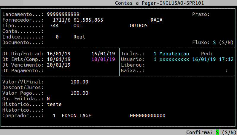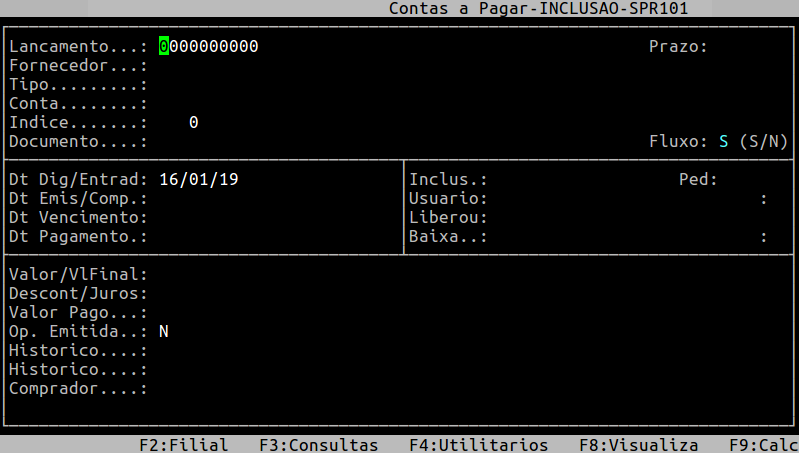 Localização: | Administracao Financeira / Contas a Pagar / Inclusao |