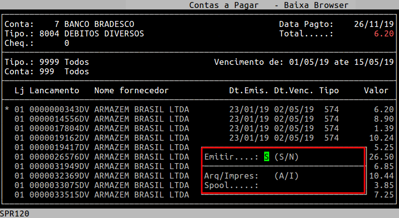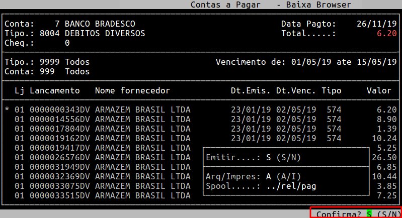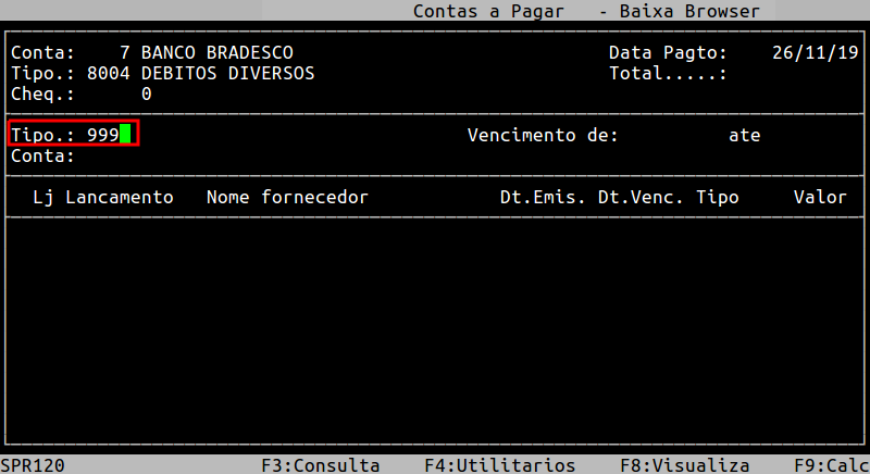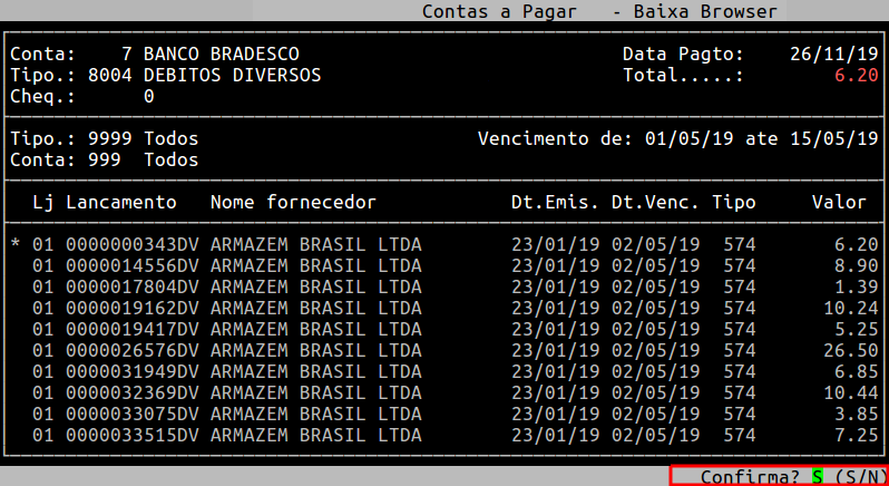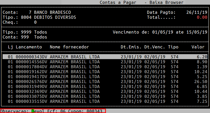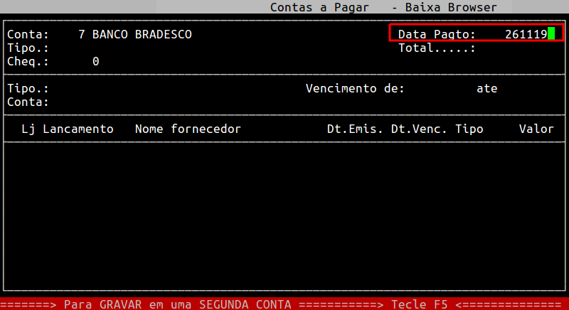Localização: | Administracao Financeira / Contas a Pagar / Baixar lancamentos / por Browser |