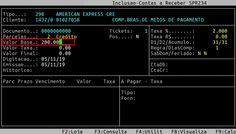 No campo Valor Base, informe o valor do lançamento e, pressione a tecla Enter para prosseguir.