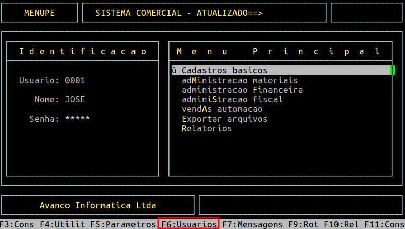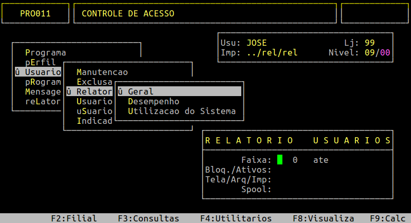 Localização: | F6 / Usuario / Relatorio / Geral |