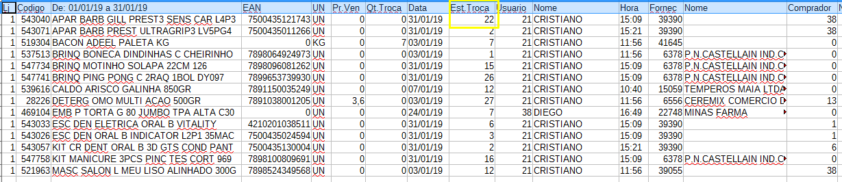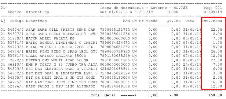 Para gerar o relatório de estorno de troca, acesse a localização citada acima.