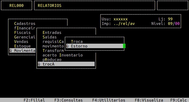 Localização | Relatorios / Movimentacoes / Troca / Estorno |