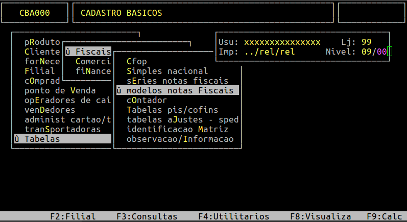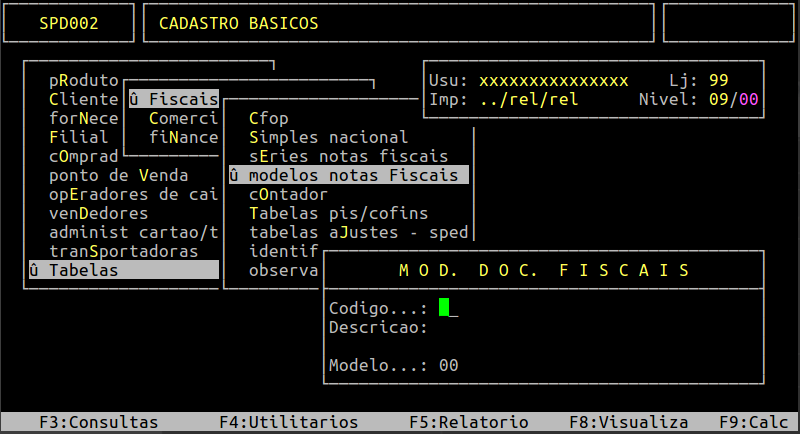 Cadastros Básicos / Tabelas / Fiscais / Modelos Notas Fiscais |