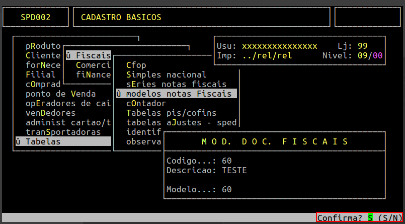 Após preencher os campos da rotina pressione Enter ou S para confirmar a inclusão.