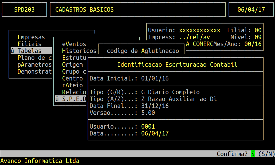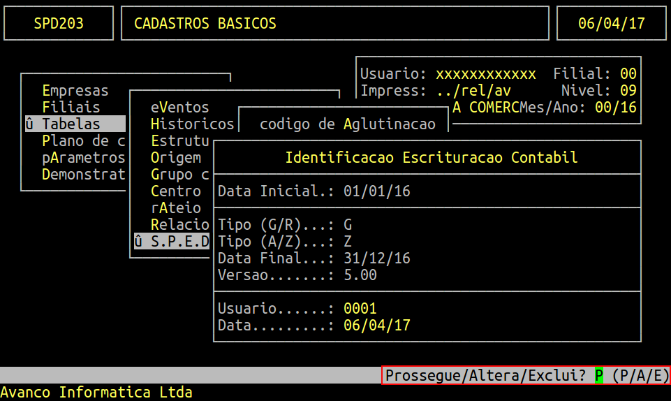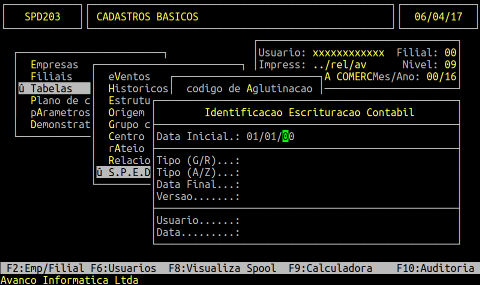 Rotina: | Identificação Escrituração Contábil |