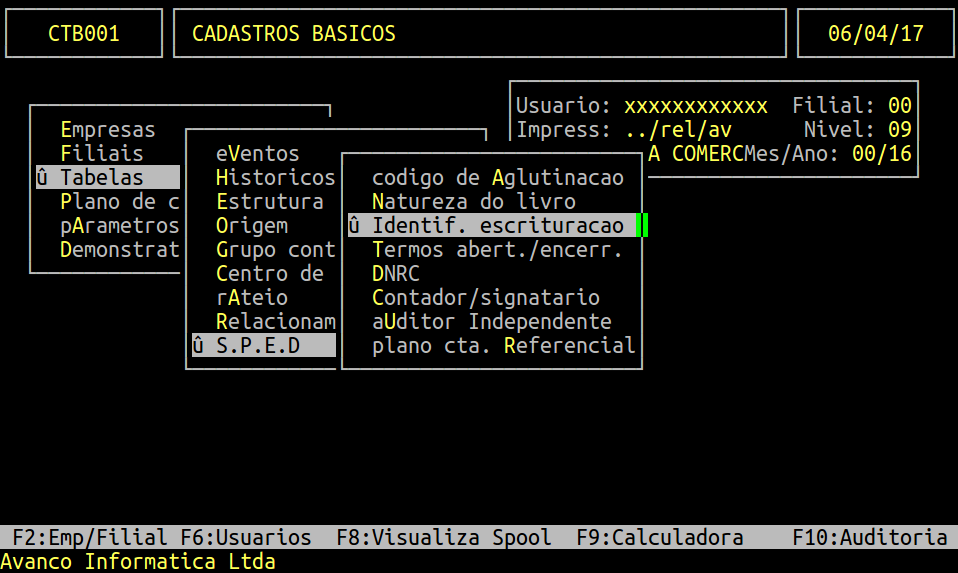 Localização: | integ008 - Cadastros Básicos / Tabelas / S.P.E.D / Identif.Escrituração |