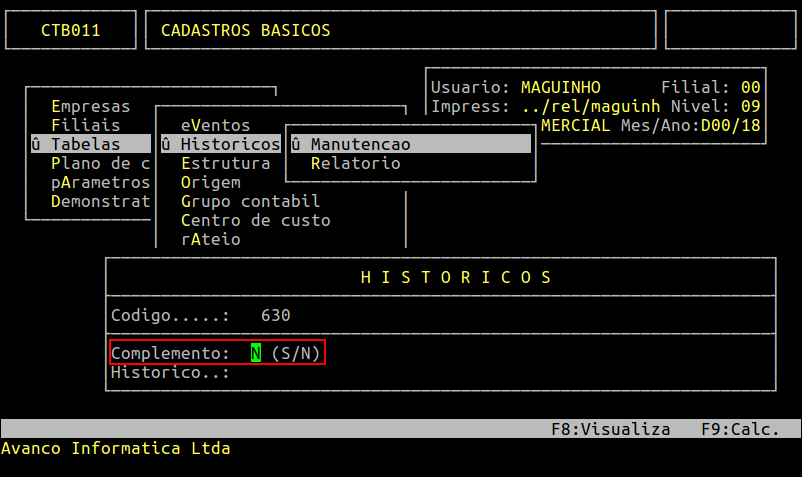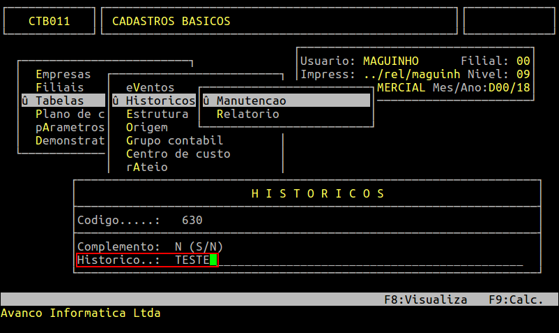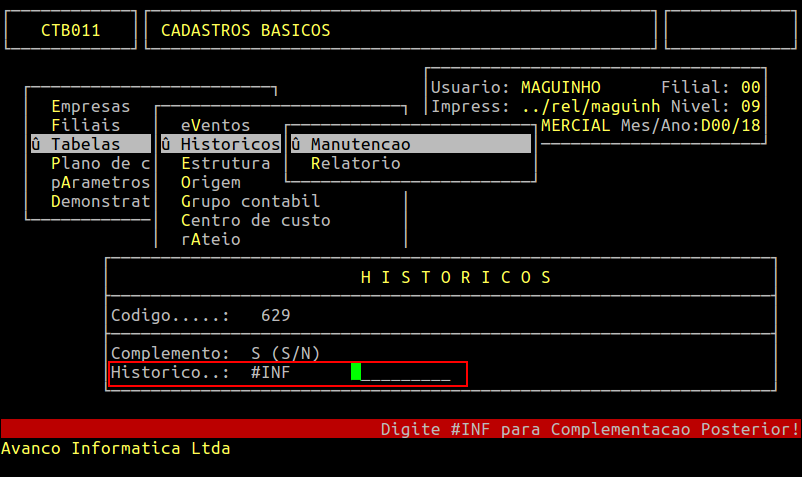 Como Cadastrar Histórico no Módulo Contábil Avanço no Sistema Integral?