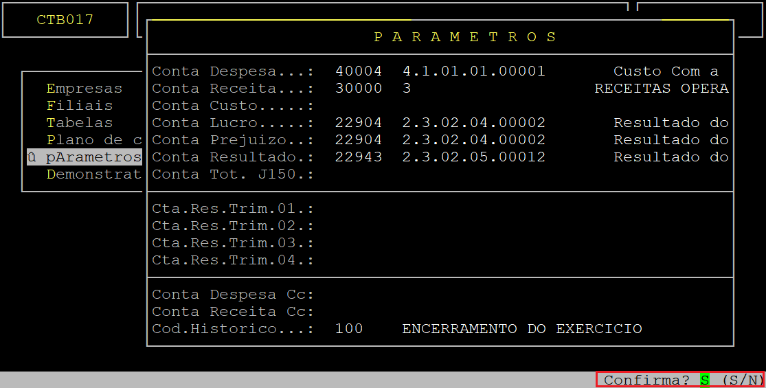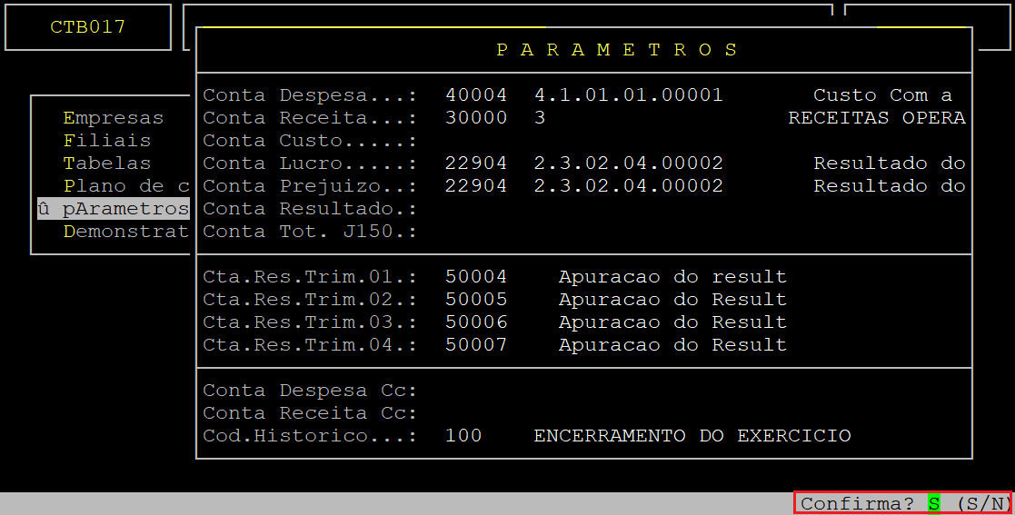 Cta. Res. Trim. 01: | Informe a conta de Resultado do 1º Trimestre, única ou igual as demais. | |