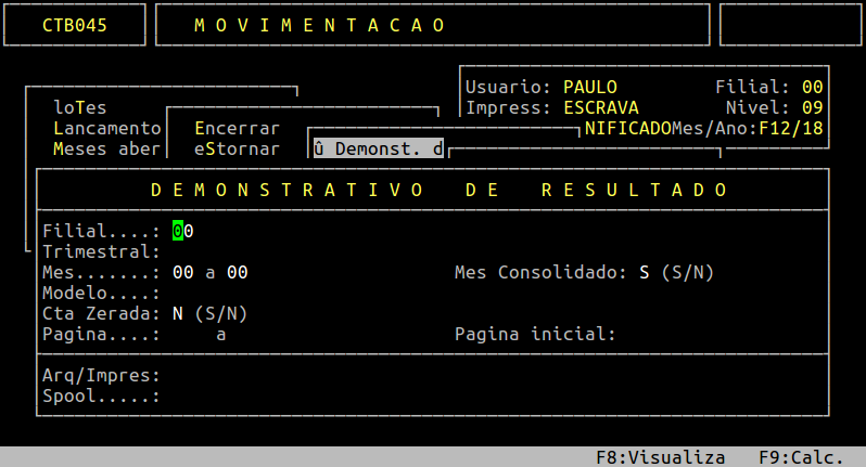 Filial: | Informe o número da filial (caso tenha mais de uma) ou 00 para ser consolidado. |