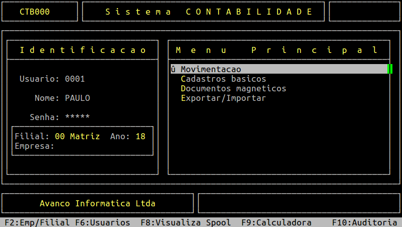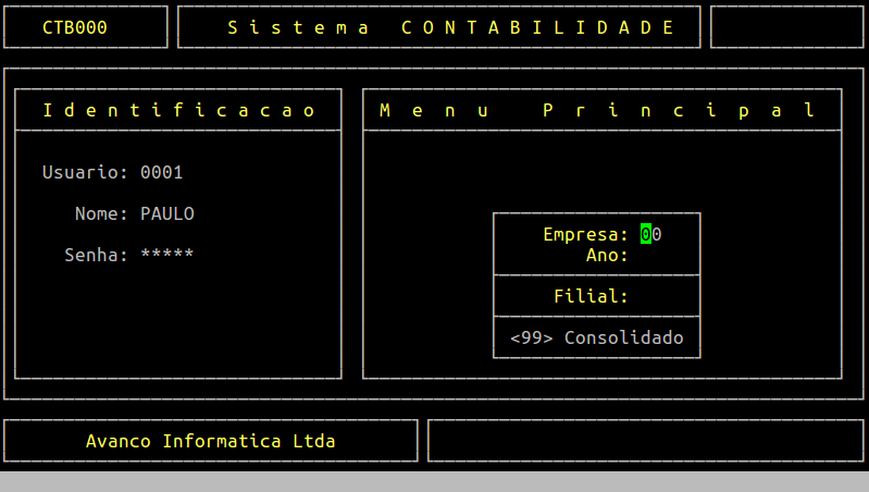 Antes de acessar a rotina, informe a empresa e ano desejados.