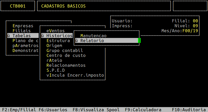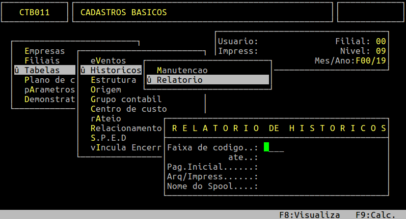 integ008 - Cadastros Basicos / Tabelas / Historico / Relatorio |