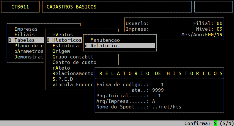 Assim que preencher os campos acima, pressione Enter ou S para confirmar e gerar o relatório, conforme o exemplo abaixo.
