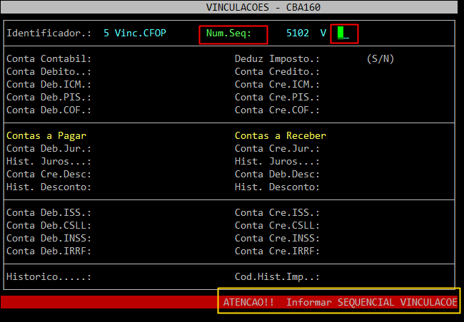 Conforme pode ser observado na tela a seguir, o campo Num.Seq deverá ficar sem informação.