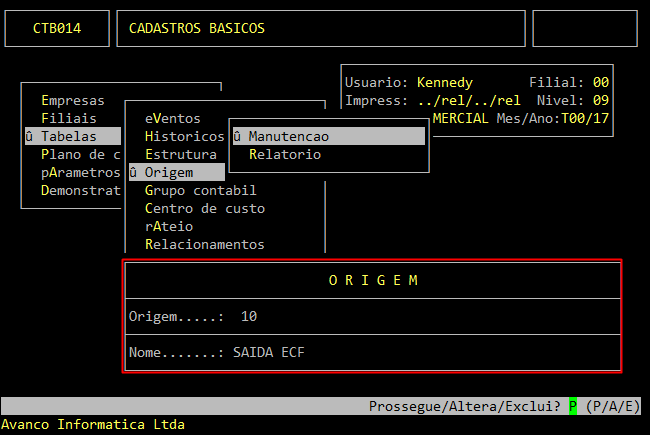Em seguida pressione Enter para confirmar o cadastro. Para obter mais informações sobre o procedimento acesse a documentação: "Dúvida | Como Cadastrar Origem Módulo Contábil Integral?".