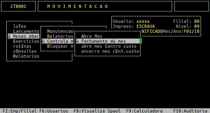 Localização: | Movimentacao / Meses Abertos / Controla Meses / Fechamento do Mes |