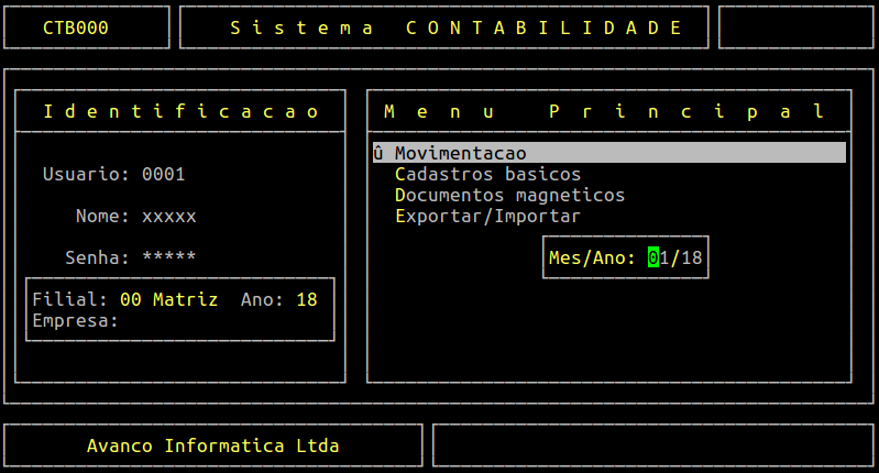 OBSERVAÇÃO: O ano já é pré definido na tela inicial ao acessar a rotina movimentação. |