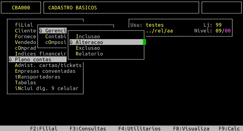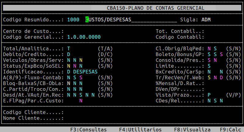 Cadastros Basicos / Plano Contas / Gerencial / Alteracao |