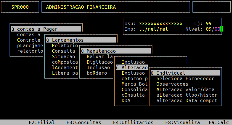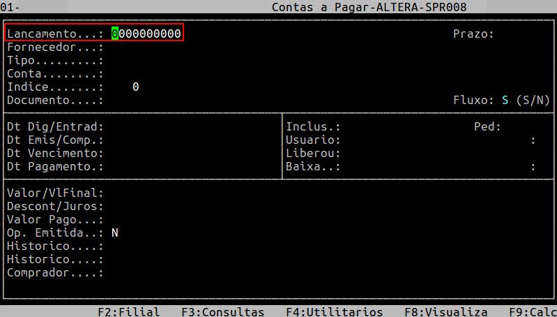 Localização: | Administracao Financeira / Contas a Pagar / Lancamentos / Manutencao / Alteracao / Individual |