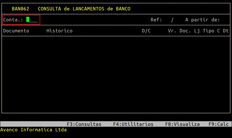 Conta: | Digite o número do código da conta que deseja realizar a consulta. |