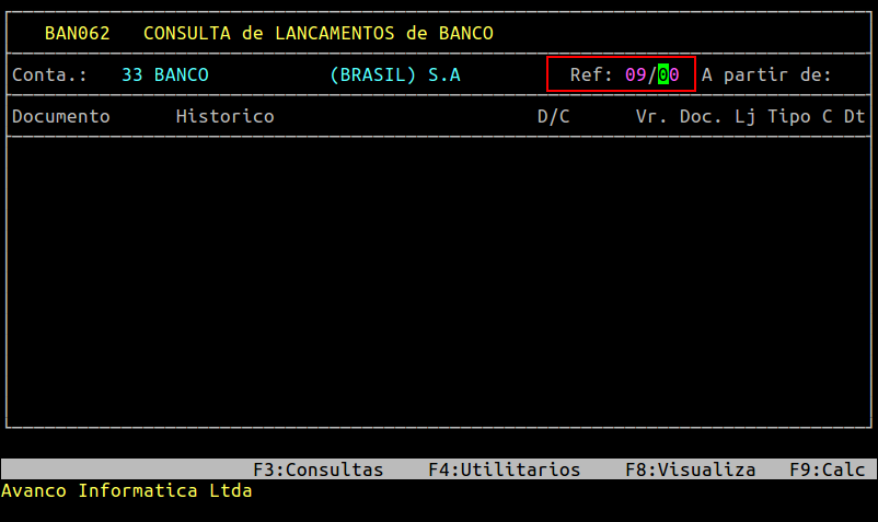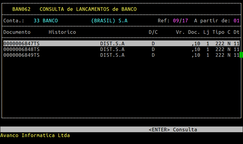 A seguir pressione ENTER e assim irá aparecer os lançamentos bancários no período selecionado.