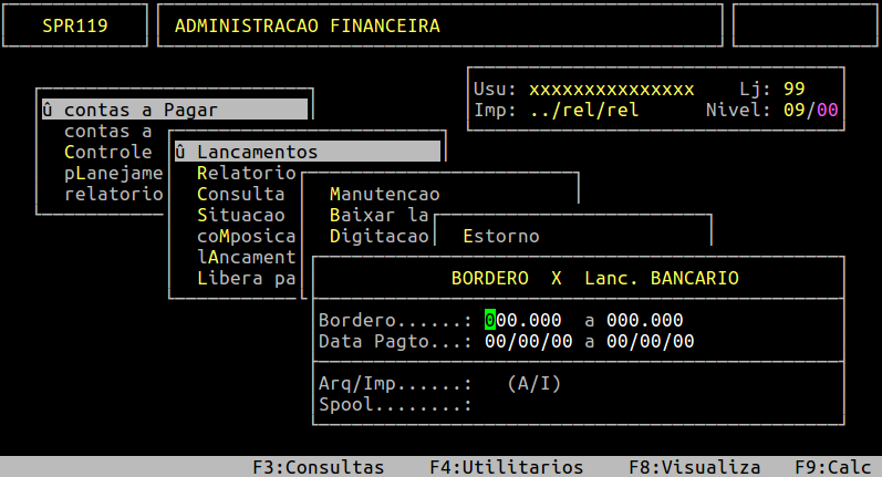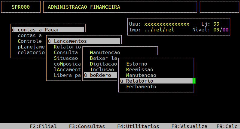 | Localização: | Administracao Financeira / Contas a Pagar / Lancamentos / Bordero / Relatorio |
