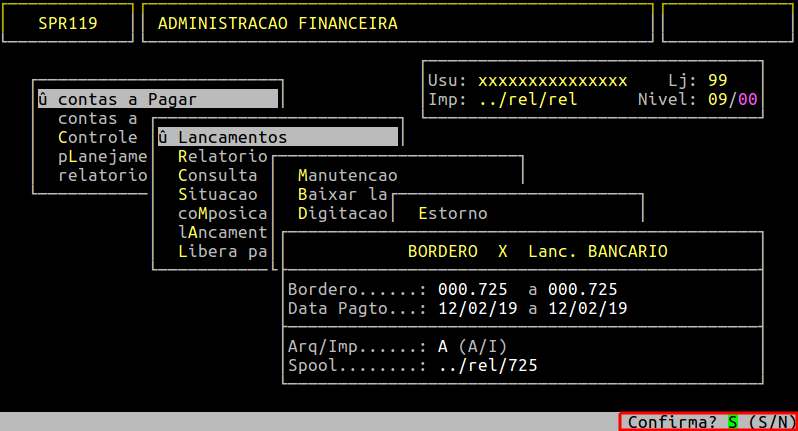 | Rotina: | Borderô x Lanc. Bancário |