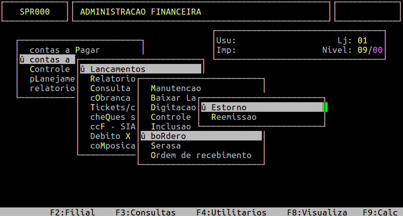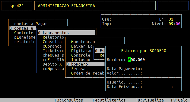 Localização: | Administracao Financeira / Contas a Receber / Lancamentos / Bordero / Estorno |