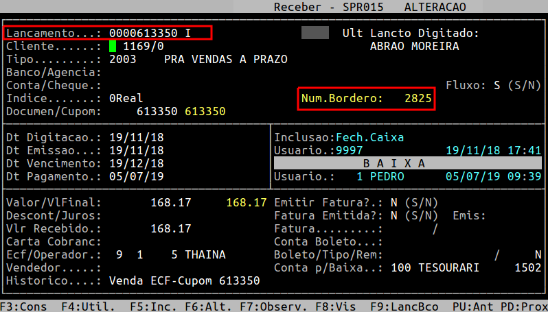 Rotina: | Receber - Alteração |