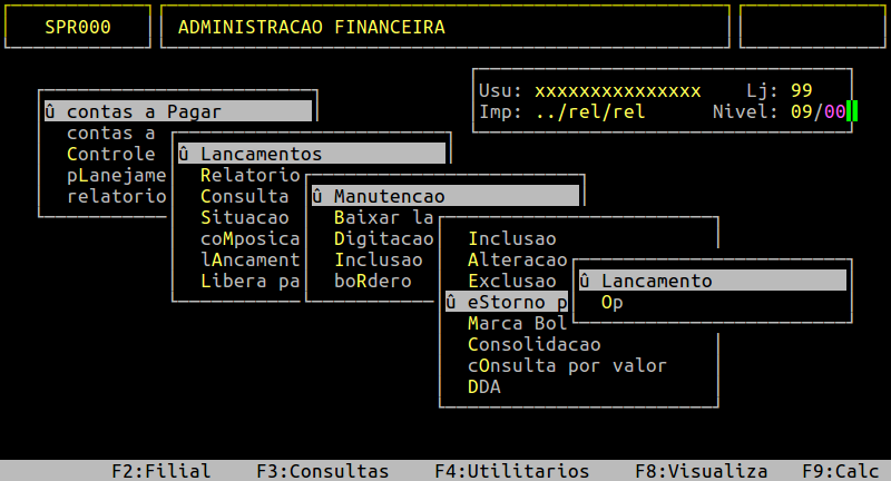 Localização: | Adm Financeira / Contas a Pagar / Lancamentos / Manutencao / Estorno Pagamento / Lancamento |