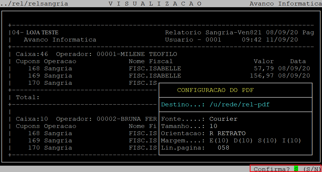 Se desejar visualizar em pdf, em seguida deverá pressionar a tecla P e depois a tecla Enter até confirmar.