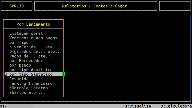 1- Gerando o Relatório do Contas a Pagar por Lançamento Sintético