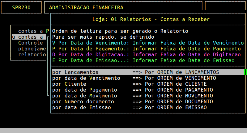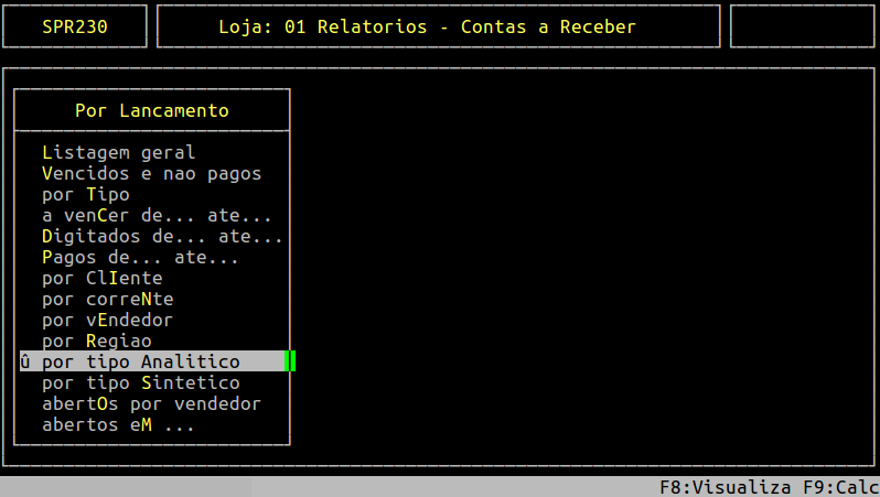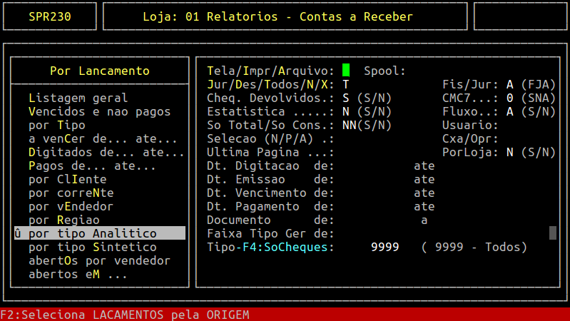 Localização: | Administracao Financeira / Contas a Receber / Relatorios / por Lancamentos / por Tipo Analítico |