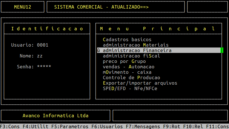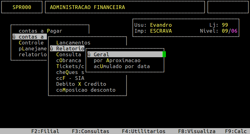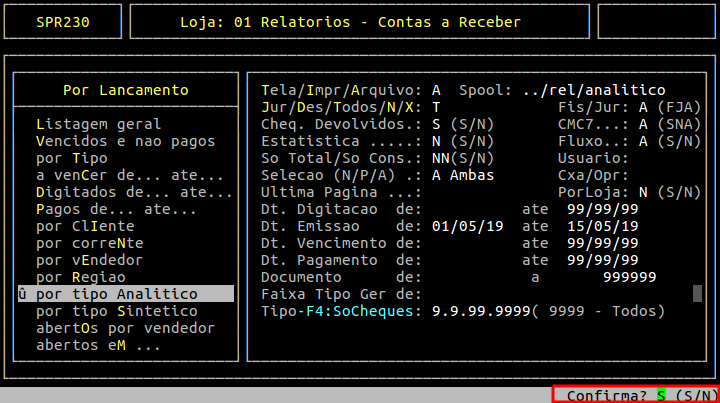 Assim que preencher os campos acima, pressione a tecla Enter ou S para confirmar e gerar o relatório, conforme o exemplo abaixo.