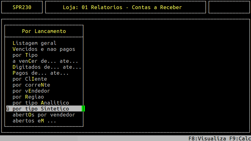 Localização: | Administracao Financeira / Contas a Receber / Relatorios / por Lancamentos / por Tipo Sintetico |