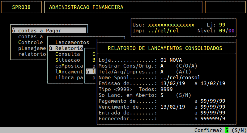 Assim que preencher os campos acima, pressione Enter ou S para confirmar e gerar o relatório.