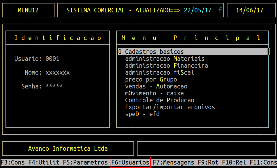 Localização: | Menu Principal / F6 (Usuários) / Usuário / Usuário - Conta / Inclusão |