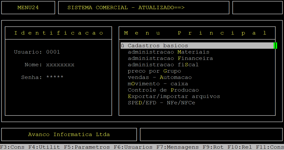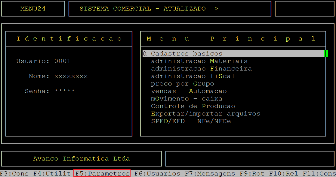 Assim que preencher os campos do quadro acima, pressione a tecla Enter ou S para confirmar, conforme o exemplo abaixo.